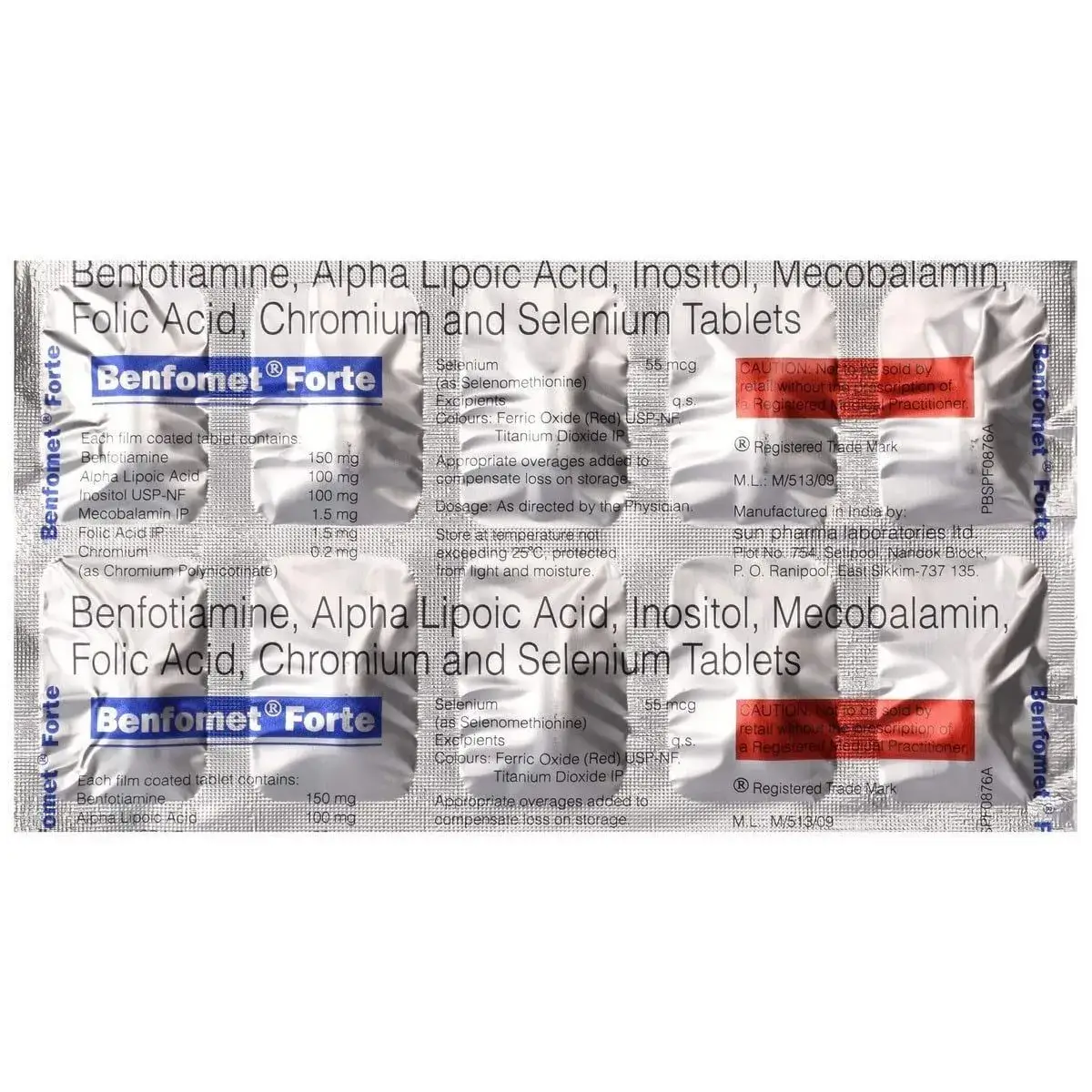 Alpha Lipoic Acid 100mg + Benfotiamine 150mg + Chromium 200mcg + Inositol 100mg + Methylcobalamin 1500mcg + Folic Acid 1.5mg + Selenium 55mcg