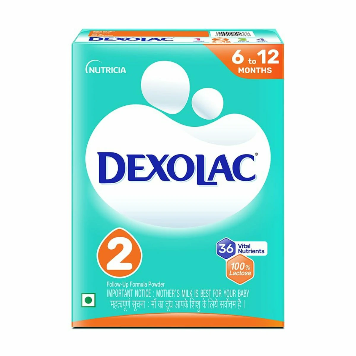**Dexolac Stage 2 Follow-Up Formula** (Nutricia) is for older infants from **6 to 12 months** who are transitioning to solid foods. This formula complements the baby’s diet, providing higher amounts of protein and iron to meet the increasing nutritional demands of a crawling baby.