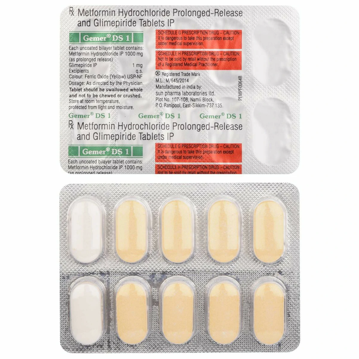 Composition Metformin 1000 mg + Glimepiride 1 mg