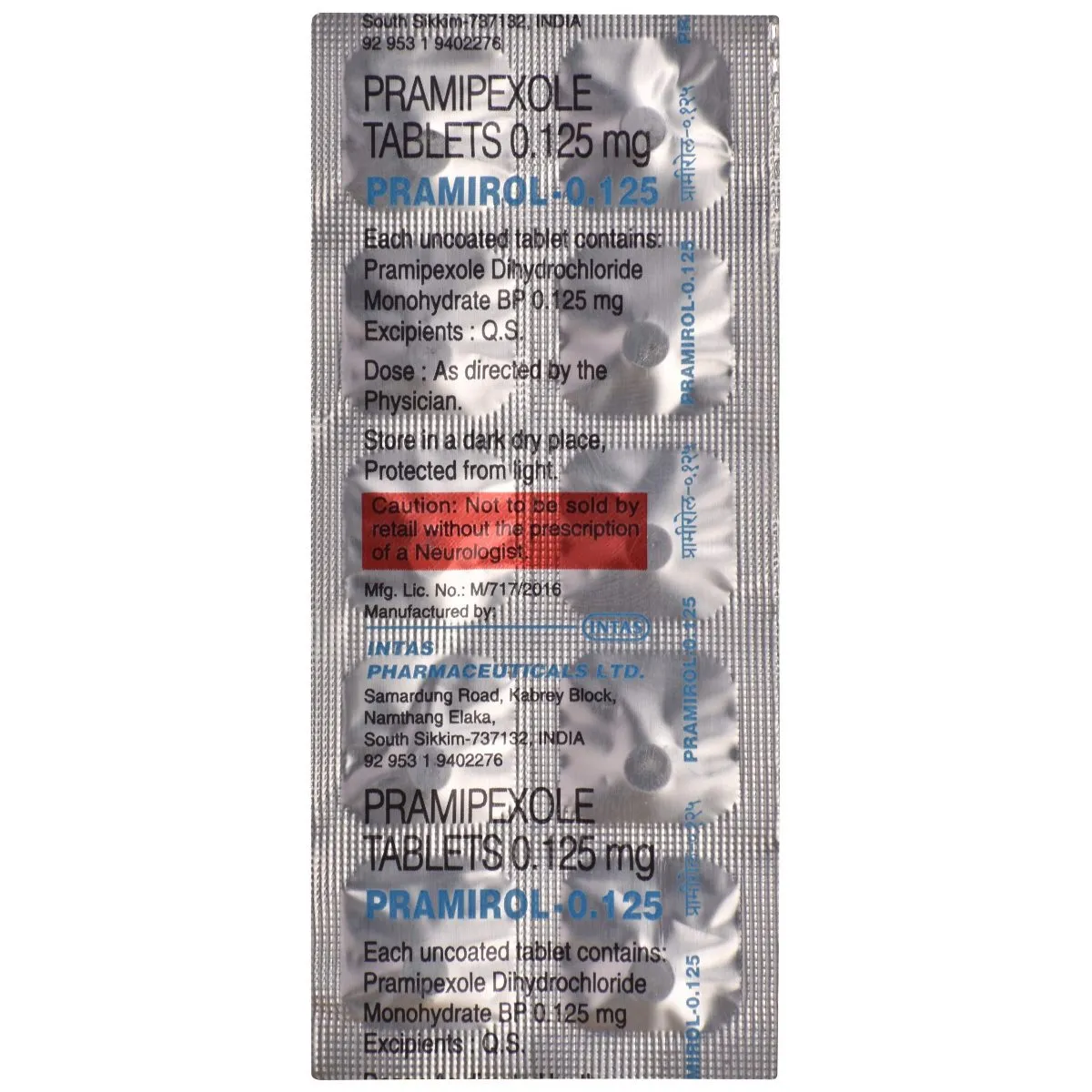 Composition Pramipexole 0.125mg